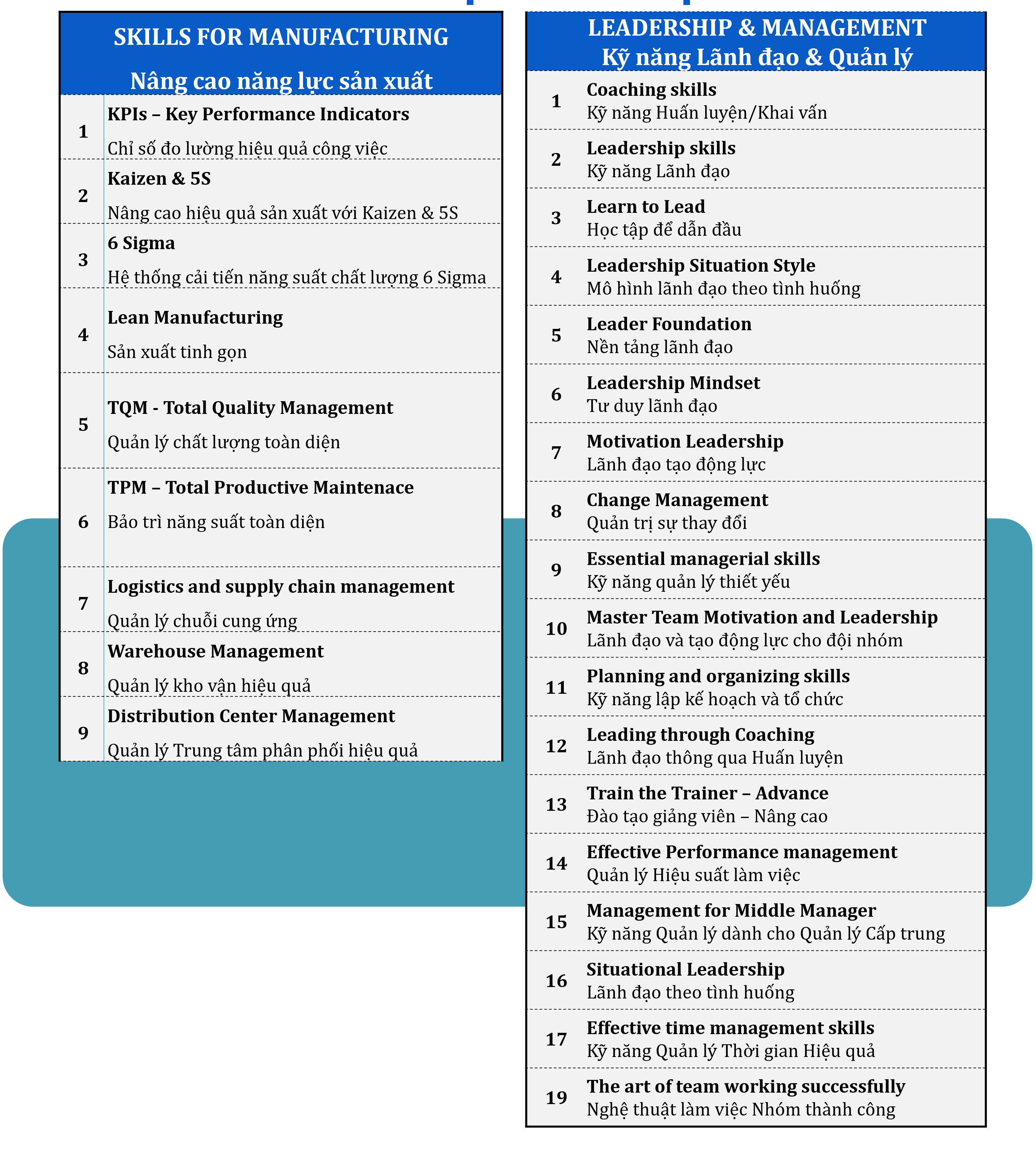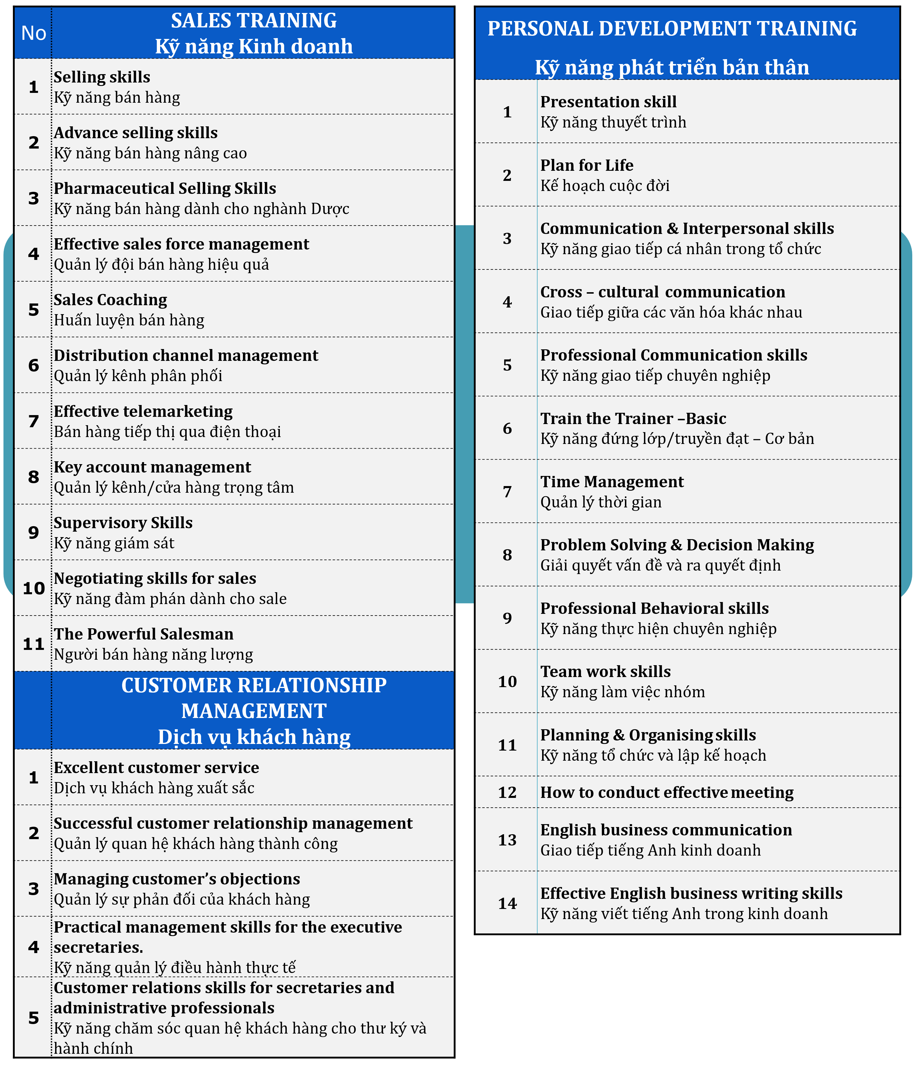 DANH SÁCH CÁC KHÓA HỌC TIÊU BIỂU TẠI L&D VIỆT NAM